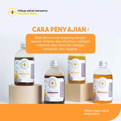 Dapat dikonsumsi langsung 1 sdm dalam 1-3 kali sehari atau campurkan 2 sdm madu ke dalam 200ml air, atau campuran makanan atau seduhan rempah.