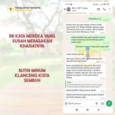 Sehingga madu klanceng populer untuk pengobatan penyakit kronis hingga program hamil pasutri.